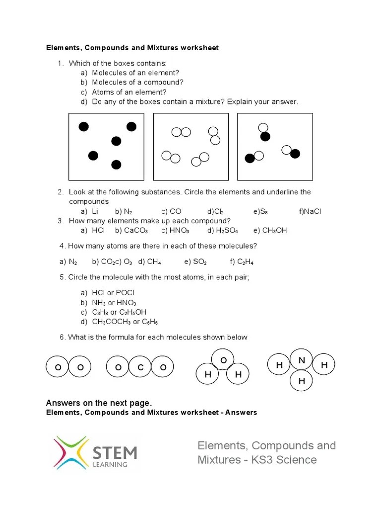 Element Or Compound Worksheet / Elements Compounds And Mixtures Worksheet Grade 7 Pdf Foto Kolekcija :